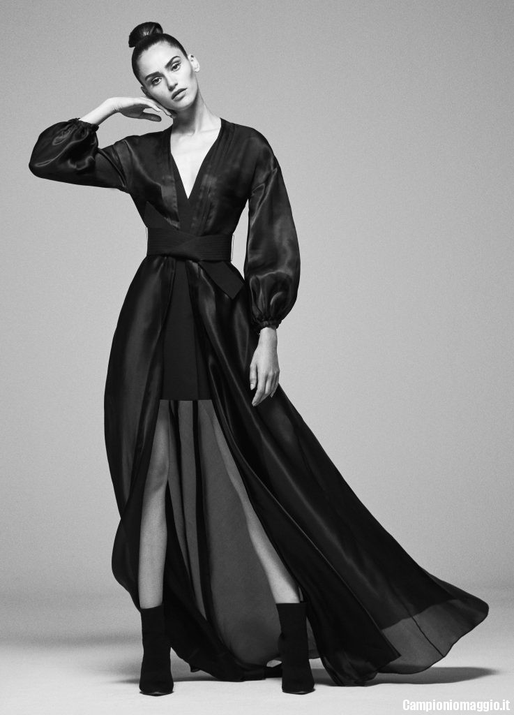 In realtà l’abito è diviso in due: la parte sotto è un microabito di cady a cui viene sovrapposto un maxi kimono in organza di seta che s’ispira all’eleganza dei samurai. Inutile dire che la Balti era stratosferica anche con in OVS, ma effettivamente l’abito merita e può essere sfruttato in diverse occasioni. L’abito corto nero è molto semplice e adatto per il tempo libero o una cena, abbinato a kimono, diventa la combinazione perfetta per una cerimonia o una serata importante.