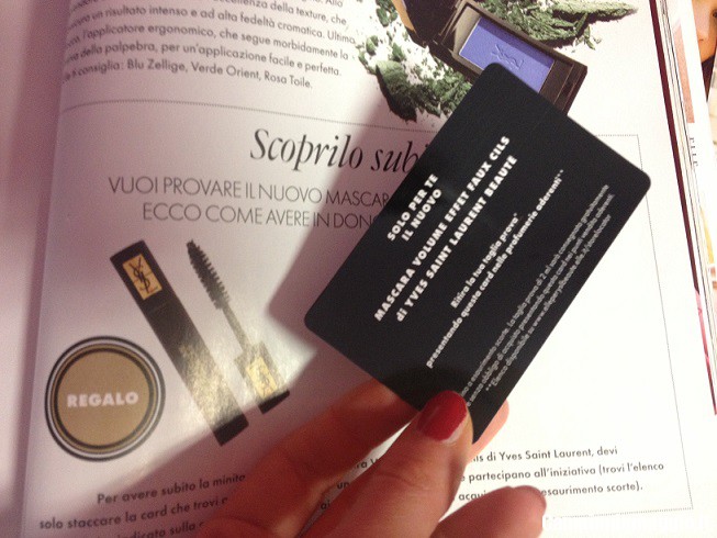 Quello che trovate con il magazine Elle è davvero un omaggio prezioso perchè il Mascara Volume effetto ciglia finte di YSL costa circa 30 euro se acquistato in profumeria.