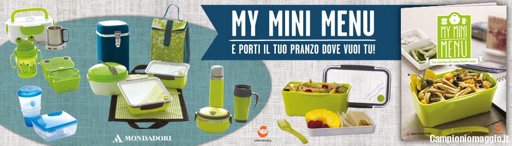 Mondadori ha pensato al rientro la lavoro con una collezione molto utile a quante pranzano spesso fuori. A partire dal 25 agosto infatti potrai trovare in edicola il set My Mini Menu, con tanti contenitori e gli accessori pratici per trasportare e conservare il pranzo.