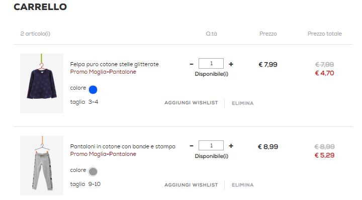 Per approfittare della promozione non avrai bisogno di nessun codice sconto: scegli i prodotti che ti interessano e inseriscili nel carrello. Troverai i prezzi già ribassati e il totale sarà 9,99€.