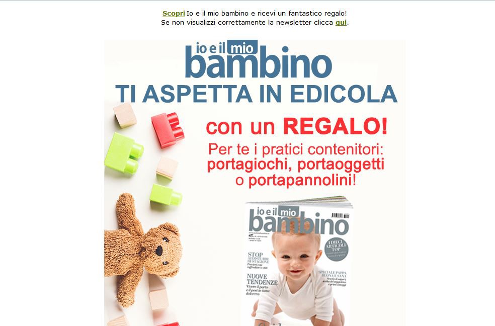 Abbiamo ricevuto via mail la newsletter di Io e il Mio Bambino, il mensile dedicato alle mamme e ai papà, che ci avvisa che il numero di gennaio 2018 è già in edicola con alcuni omaggi.