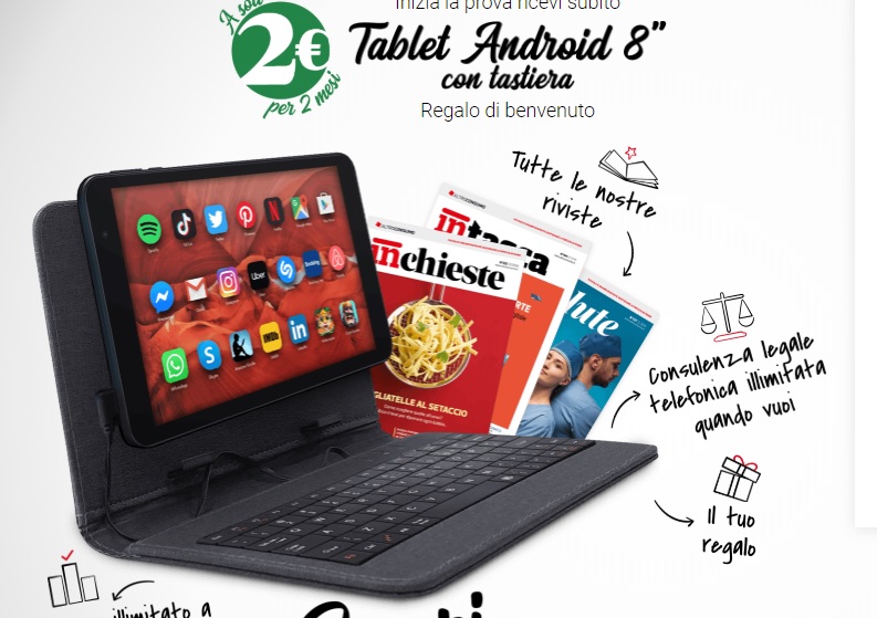 Il nuovo regalo di Benvenuto di Altroconsumo è un tablet 8” con tastiera inclusa, che potrai ricevere aderendo all‘offerta “Prova”.