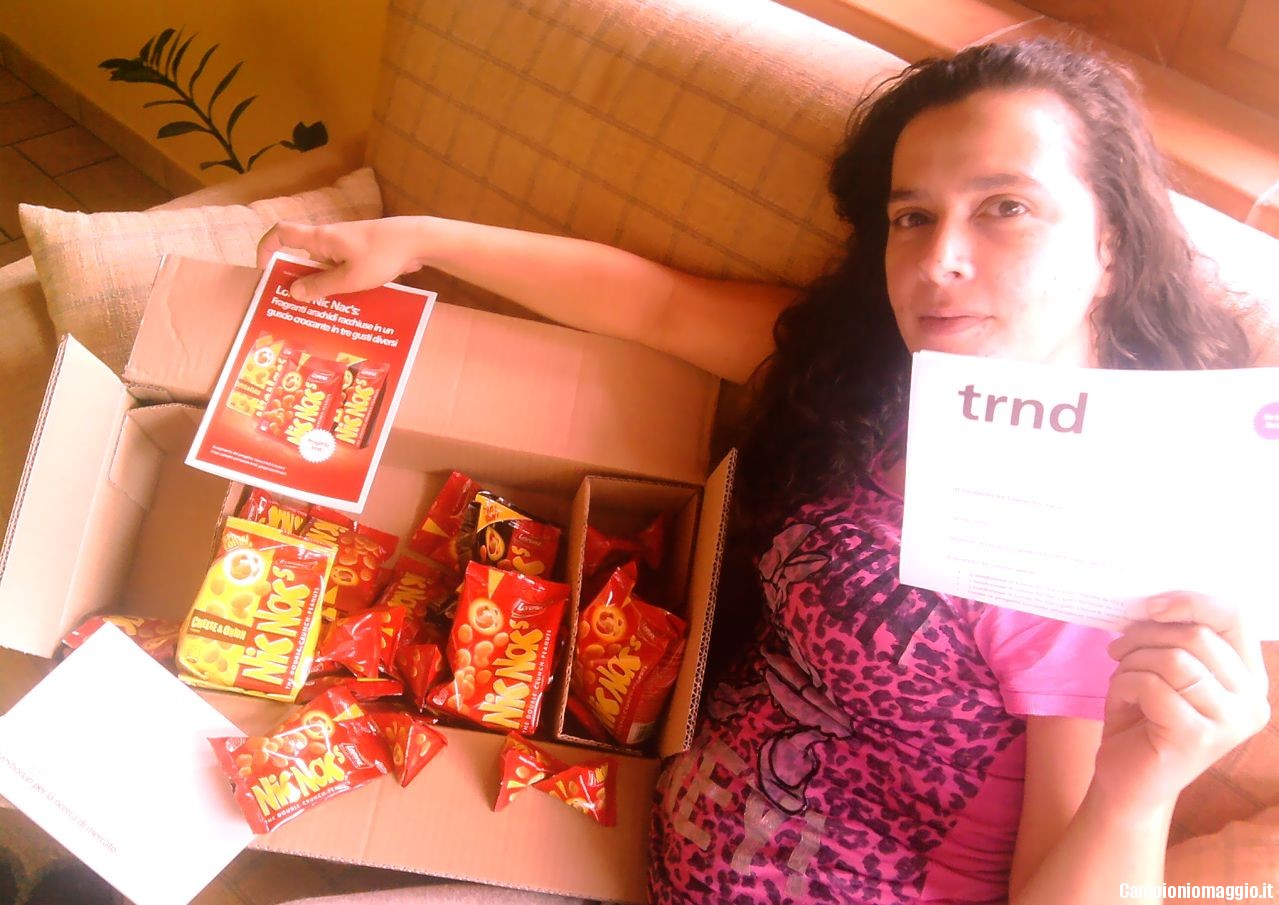 messaCome gia’ detto..ero stata scelta come Tester per la Trnd dei Prodotti LORENZ.Ecco il KIT arrivato tramite Corriere SDA a casa il 28 maggio!!Lo aspettavo con ansia..e vi dico una cosa:sono strepitose le NIC NAC’S!!Davvero irresistibili.sono andate in fumo!!!Tutti le hanno apprezzate!!Grande TRND e tantissime GRAZIE a VOI per avermelo fatto trovare con i vostri annunci sempre aggiornati e precisi!GRAZIE!!!!! 🙂