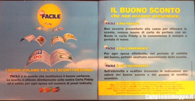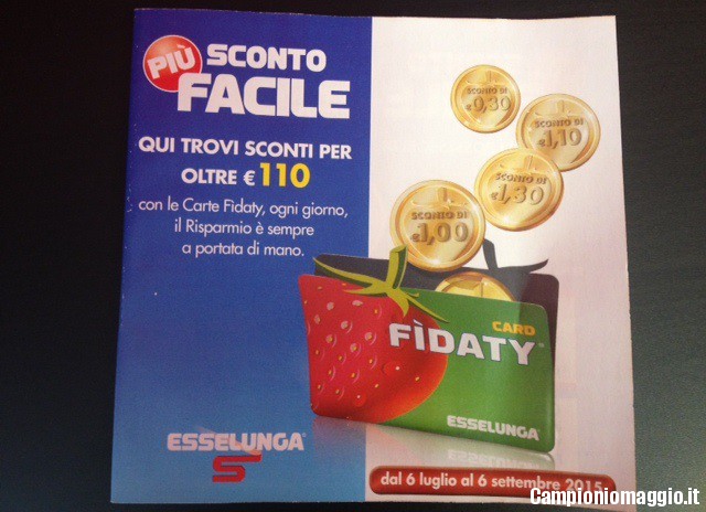 Questa mattina facendo la spesa da Esselunga alla cassa abbiamo trovato un piccolo volantino sullo “Sconto Più Facile”, ovvero una promozione valida per i possessori di Carte Fidaty dal 6 luglio al 6 settembre. Si tratta di un carnet di coupon che non è necessario stampare, ovvero vengono attivati direttamente dalla vostra carta fedeltà, senza bisogno di stampare nessun buono cartaceo.