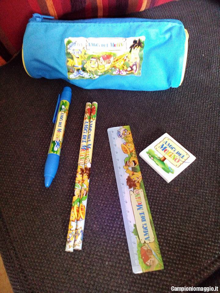 Anche Mulino Bianco ha deciso di fare un regalo a tutti i bambini che iniziano la scuola, con un simpatico set distribuito in alcuni punti vendita della grande distribuzione. Marika ci ha inviato la foto di questo kit, seguita da una breve descrizione: “Set scuola in regalo da Mulino Bianco. Acquistando due confezioni di merendine matite/penna/gomma e righello. Con tre confezioni danno anche l’astuccio. Promozione trovata presso supermercati Tigros; non so se attiva in altre catene di supermercati”.