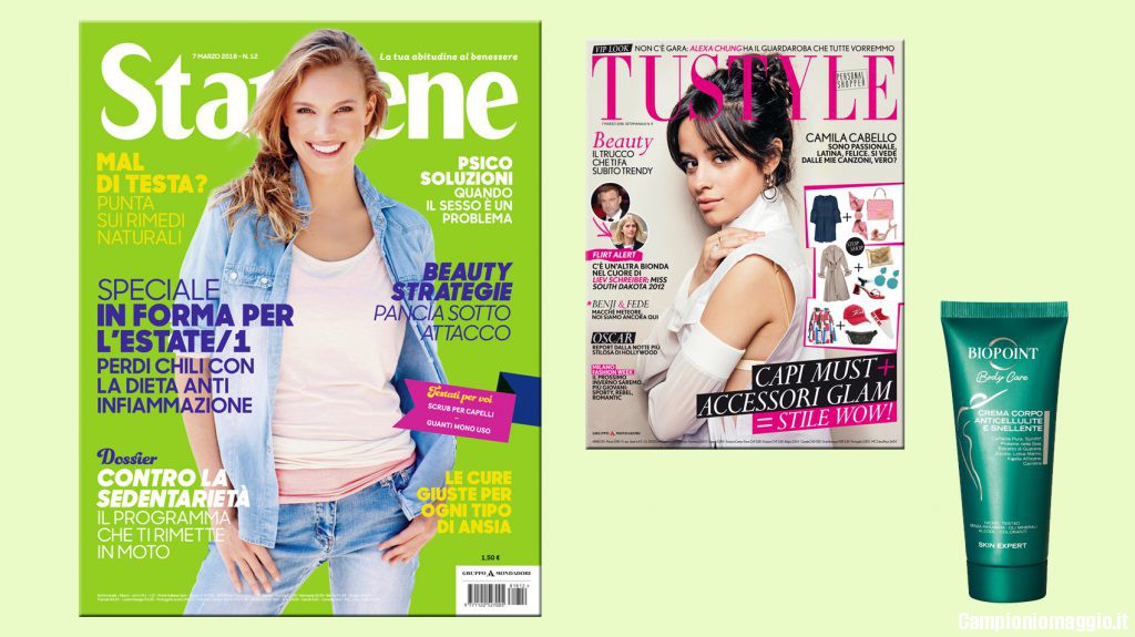 Dal 7 marzo in edicola potete trovare la rivista Starbene con Tu Style e in allegato la Crema Anticellulite Biopoint a soli 2 euro! Cosniderando che questa crema in negozio costerebbe 15€ circa, si tratta di una buona occasione di risparmio.