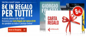 La Feltrinelli: carta regalo da 8€ omaggio con acquisto