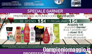Garnier: spendi 15€ ottieni 15€ in buoni sconto