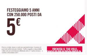 250.000 posti da 5€ per festeggiare 5 anni Volotea