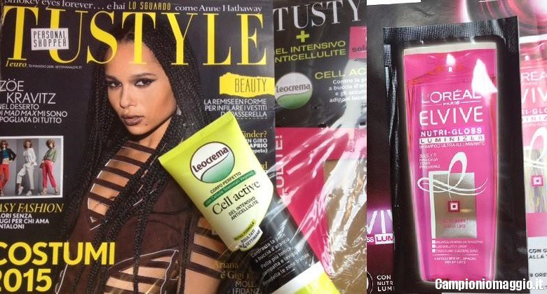 Già lo scorso anno se ricordate, Tu Style aveva allegato questo campione gratuito ad una copia della rivista di maggio. Regalo perfetto per mettersi in forma per la prova costume! Lo scorso anno il campione gratuito Cell active (gel intensivo con Cellulte Staminali vegetali) era di 100 ml. Dal 19 maggio potrete trovarlo nuovamente in edicola! All’interno del magazine troverete anche un campione omaggio di shampoo Elvive!