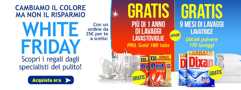 Nel tuo carrello infatti avrai la possibilità di selezionare come omaggio due confezioni di Pril da 90 Tabs oppure 2 confezioni di Dixan Polvere da 85 misurini! La spedizione inoltre è gratuita.