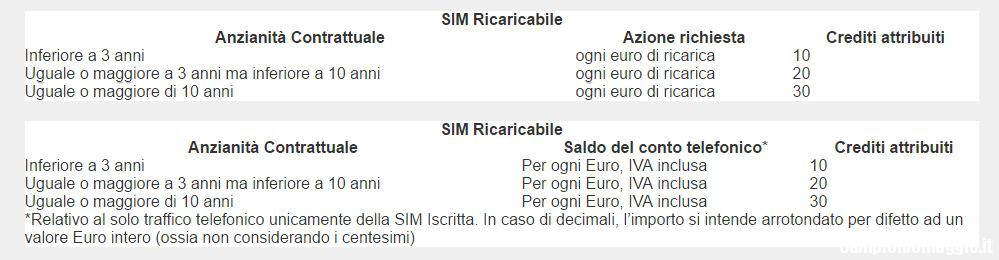 Quello che verrà premiato sono l’anzianità contrattuale (da quanto tempo sei cliente Vodafone) e le ricariche o saldo del conto telefonico, se hai un abbonamento. Le soglie minime per la richiesta dei premi sono differenti a seconda della tua permanenza con Vodafone: inferiore ai 3 anni, uguale o maggiore ai 3 anni, uguale o maggiore ai 10 anni. Inoltre ogni venerdì riceverai un regalo diverso! Clicca qui per iscriverti alla manifestazione a premi vodafone.