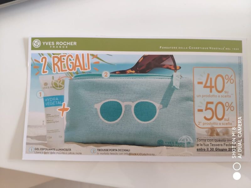 Grazie alla cartolina di Giugno 2020 potrai ritirare due omaggi con acquisto (anche minimo di pochi euro). Si tratta di una pochette porta occhiali da sole perfetta per l’estate e un gel esfoliante luminosità.